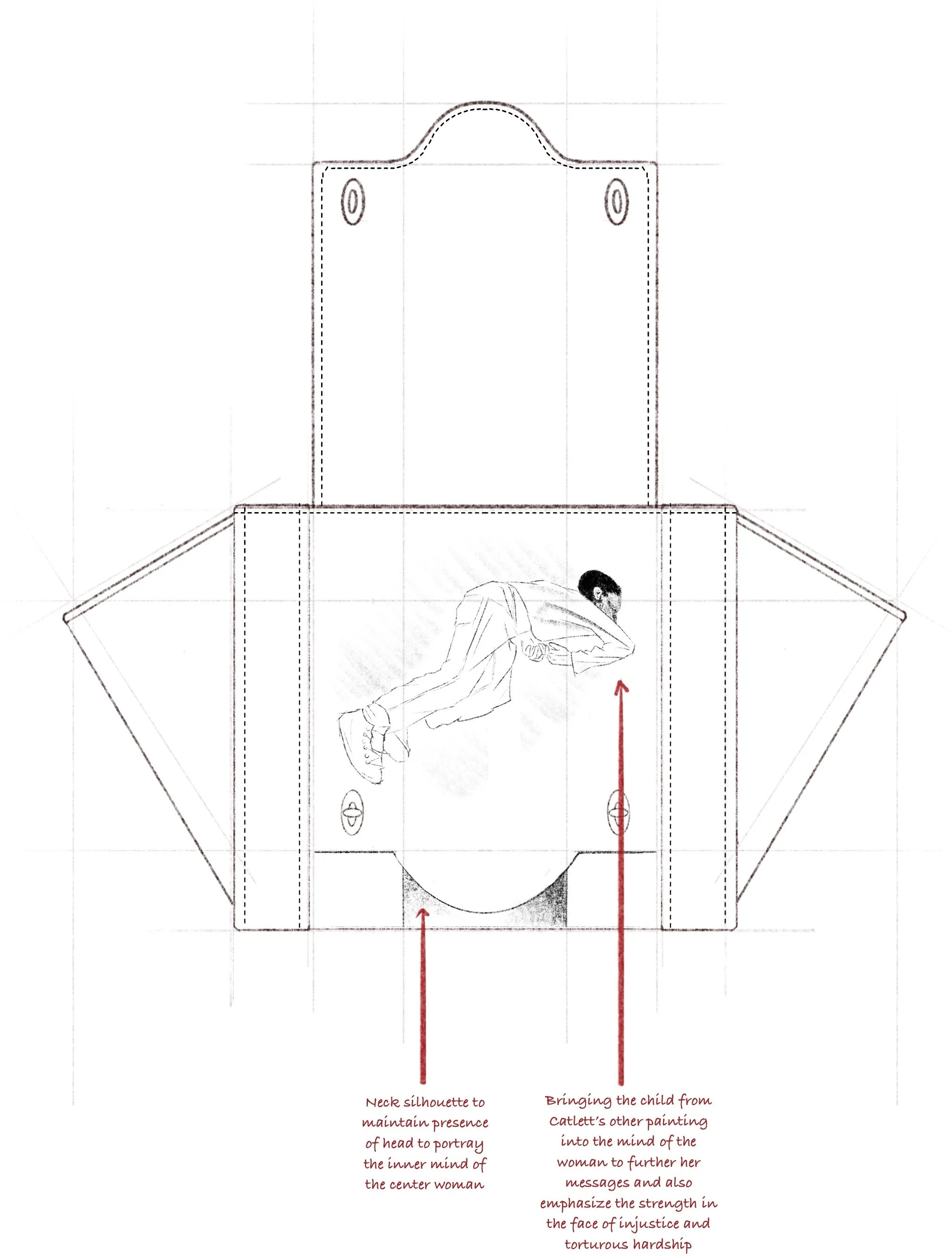 Disclaimer: I want to make it clear that I did not aim to represent or claim to have personal experience of what is shown in these works. I created this wearable art with the aim of bringing Elizabeth Catlett's powerful artworks to life and spreading her messages through my craft. A bag is more than just an accessory – it’s a chance to express something meaningful. Leather isn't just a material; it's skin telling a story of life. This Ode to Elizabeth bag was carefully designed to give her artworks a tangible form and further her powerful messages.